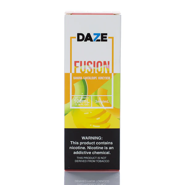 7 Daze Fusion presents Banana Cantaloupe Honeydew. Indulge in the refreshing taste of ripe bananas, sweet cantaloupe, and fresh honeydew. This vape juice flavor is sweet and refreshing, and will have you coming back for more.