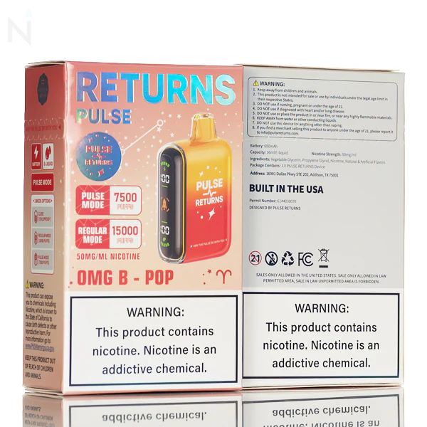- Package Includes: 1x Pulse Returns 15K Disposable Vape